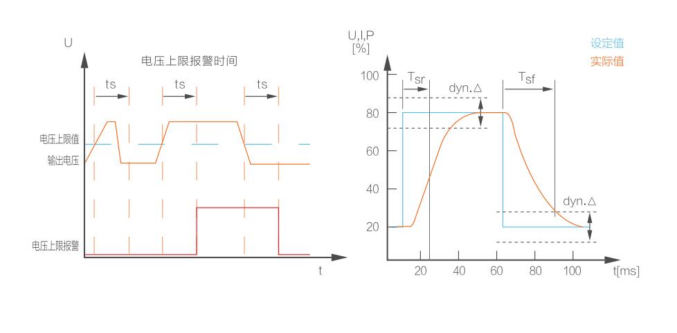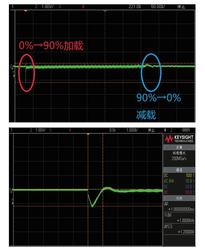 采用多环路复合控制技术,双向可编程直流电源提供了快速的动态响应能力,瞬间加载电压跌落<1%,去载时几乎没有电压过程,动态响应时间<2ms。